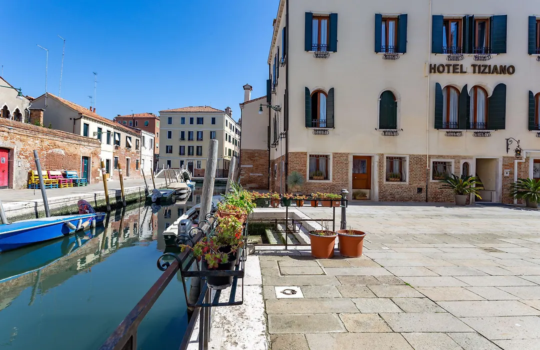 This Venice hotel is situated near the quiet district of Venice, around a 10-minute drive from and the grand showpiece square "Piazza San Marco". There is the grand opera house "Teatro la Fenice" only 1.9 km from the charming Tiziano Venice. The accommodation is ideally located in proximity to Venezia Santa Lucia train station.
